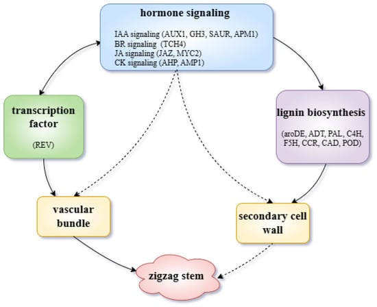 - Cao, H.; Wang, F.; Lin, H.; Ye, Y.; Zheng, Y.; Li, J.; Hao, Z.; Ye, N.; Yue, C. Transcriptome and Metabolite Analyses Provide Insights into Zigzag-Shaped Stem Formation in Tea Plants (Camellia sinensis). BMC Plant Biol. 2020, 20, 98. [Google Scholar] [CrossRef]
