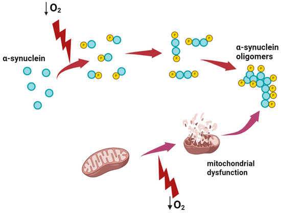 The debate persists regarding whether α-syn pathology arises from mitochondrial dysfunction or whether mitochondrial damage is a consequence of α-syn aggregation and/or pathology formation. It is proposed that other factors, particularly hypoxia and the body’s response to it, play a pivotal role in the onset of pathological processes affecting both α-syn and mitochondrial function in PD pathogenesis [73].