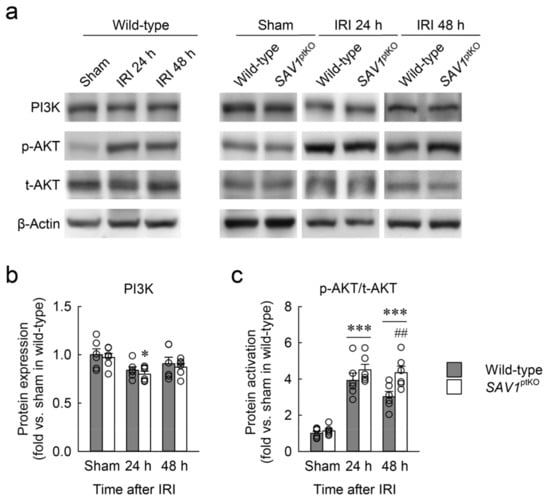 2.6. Loss of SAV1 in the Kidney Proximal Tubule Activates AKT after Kidney IRI