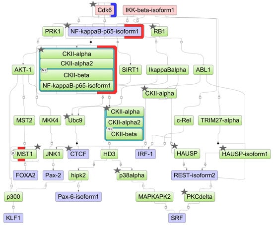 http://platform.genexplain.com, accessed on 10 December 2023) with the following settings: database used, TRANSPATH; path length, R = 10; and cut-off of results by FDR, 0.01. For each potential key regulator, in addition to FDR, Score, Z-score, and Ranks sum were calculated.