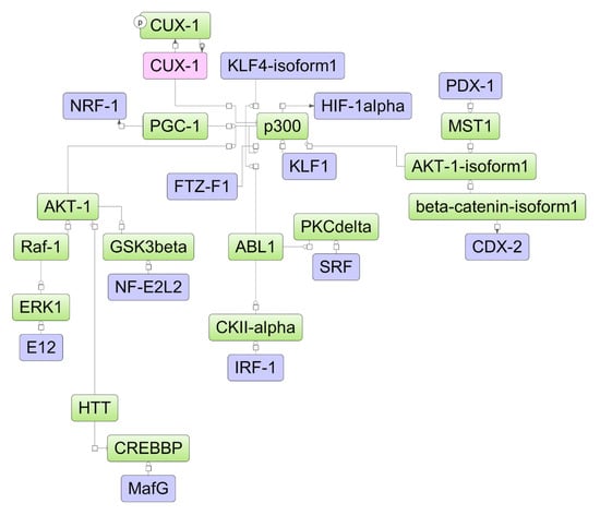 p-value < 0.005. The matrices were converted into a set of TFs (using the identifier “Protein Tranpath peptides”), which were in turn annotated using the identifier “Gene Symbol”. The matrices of TFs obtained for DEGs at 3, 12, 24, and 72 h after the ATRA treatment were combined into one list within each cell line studied. For the set of TFs obtained in the previous stage, a search for a common regulator was performed using the “Regulator search” module of the geneXplain platform (