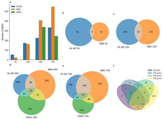 44]. Lists of DEGs at the 3 h, 12 h, 24 h, and 72 h time points of the ATRA treatment (Genes: Gene Symbol as an identifier) obtained for HL-60 and NB4, and lists of DEGs at the 24 h and 72 h time points of the ATRA treatment obtained for K562 cells, were used for analysis. For the mapping to model patterns, we used the lists of DEPs and MS-identified proteins for each cell line, which were previously converted from “Genes: Gene Symbol identifiers” into “Proteins identifiers: Protein Transpath”.