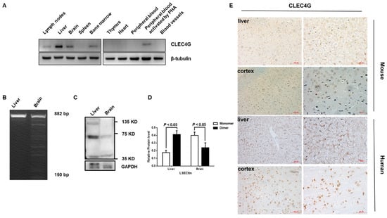 2.1. High Levels of CLEC4G Are Expressed in Both Mouse and Human Brain Tissues