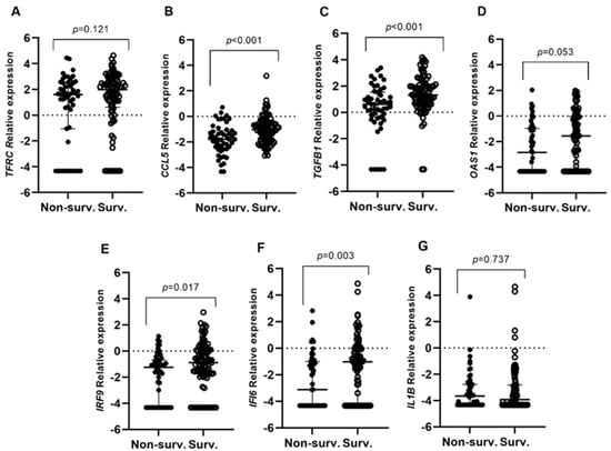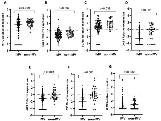 - Gajate-Arenas, M.; García-Pérez, O.; Chao-Pellicer, J.; Domínguez-de-Barros, A.; Dorta-guerra, R.; Lorenzo-morales, J.; Córdoba-Lanús, E. Differential Expression of Antiviral and Immune-Related Genes in Individuals with COVID-19 Asymptomatic or with Mild Symptoms. Front. Cell. Infect. Microbiol. 2023, 13, 1173213. [Google Scholar] [CrossRef]