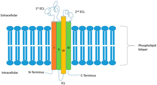 Overall, CLDNs constitute a highly related family of proteins, which are composed of four transmembrane segments, a large extracellular loop containing a consensus sequence motif, a second shorter extracellular loop, an intracellular loop, an internal C-terminus, and a very short internal N-terminal region [6]. The two extracellular loops are crucial for the formation of the paracellular barriers and electrolytes’ exchange, which, in turn, regulates the permeability characteristics of the TJs (Figure 1). Rajagopal and Nangia examined the structure of CLDN5 and CLDN15. In their work, they investigated the cis and trans conformations of these two CLDNs, showing that in CLDN5, the cis and trans interactions seal the paracellular space, while in CLDN15, they form breaks in the paracellular space, leading to pore formation [14]. This translates to their corresponding functions, where CLDN5 is a barrier-forming protein while CLDN15 is a channel-forming one [14].