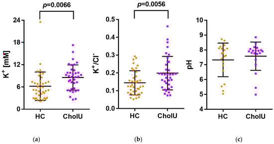 Furthermore, K+/Cl− ratios were increased in sweat from CholU patients compared to healthy controls (Figure 4), indicating alterations in the underlying secretory processes.