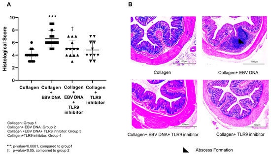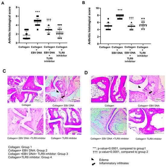 2.2. TLR9 Inhibition Ameliorates the Arthritis Histological Scores in an EBV DNA-Exacerbated RA Mouse Model