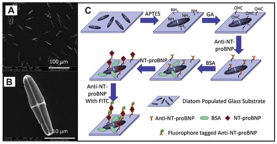 - Chen, T.; Wu, F.; Li, Y.; Rozan, H.E.; Chen, X.; Feng, C. Gold nanoparticle-functionalized diatom biosilica as label-free biosensor for biomolecule detection. Front. Bioeng. Biotechnol. 2022, 10, 894636. [Google Scholar] [CrossRef] [PubMed]