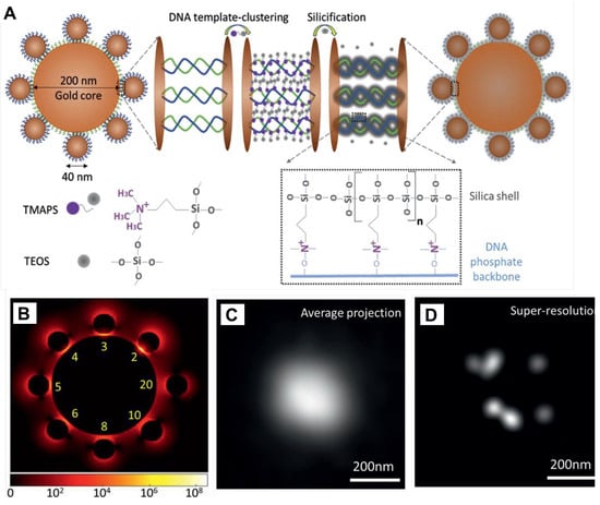 - Liang, L.; Zheng, P.; Zhang, C.; Barman, I. A programmable DNA-silicification-based nanocavity for single-molecule plasmonic sensing. Adv. Mater. 2021, 33, 2005133. [Google Scholar] [CrossRef] [PubMed]