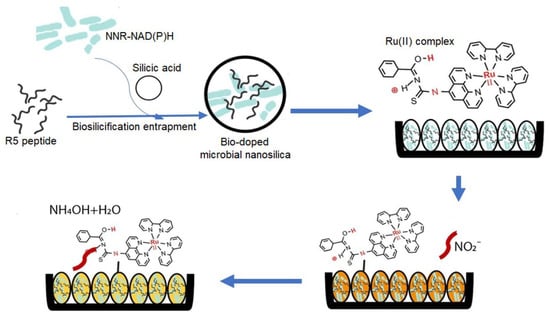 - Mohd Zuki, S.N.S.; Goh, C.T.; Kassim, M.B.; Tan, L.L. Bio-doped microbial nanosilica as optosensing biomaterial for visual quantitation of nitrite in cured meats. Biosensors 2022, 12, 388. [Google Scholar] [CrossRef] [PubMed]