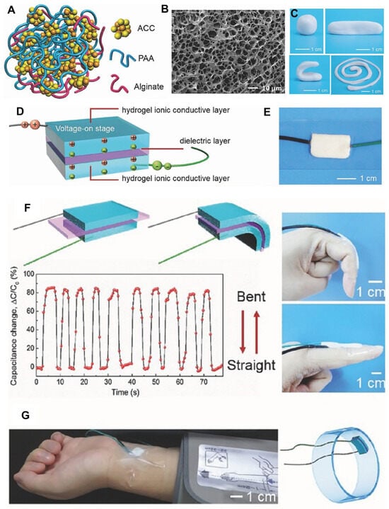 - Liu, J.-h.; Mao, Z.; Chen, Y.; Long, Y.; Wu, H.; Shen, J.; Zhang, R.; Yeung, O.W.H.; Zhou, B.; Zhi, C.; et al. Amorphous biomineral-reinforced hydrogels with dramatically enhanced toughness for strain sensing. Chem. Eng. J. 2023, 468, 143735. [Google Scholar] [CrossRef]