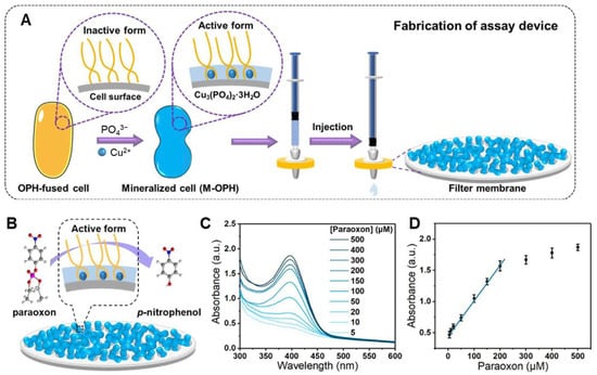 - Bian, X.; Chen, D.; Han, L. Taking full advantage of the structure and multi-activities of mineralized microbial surface-displayed enzymes: Portable three-in-one organophosphate pesticides assay device. Chem. Eng. J. 2022, 429, 132317. [Google Scholar] [CrossRef]