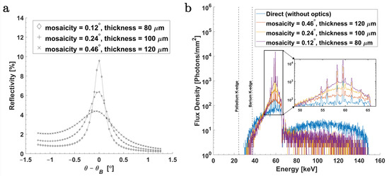 - Šmíd, M.; Pan, X.; Falk, K. X-ray spectrometer simulation code with a detailed support of mosaic crystals. Comput. Phys. Commun. 2021, 262, 107811. [Google Scholar] [CrossRef]
