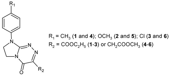 - Sztanke, K.; Rzymowska, J.; Niemczyk, M.; Dybała, I.; Kozioł, A.E. Synthesis, crystal structure and anticancer activity of novel derivatives of ethyl 1-(4-oxo-8-aryl-4,6,7,8-tetrahydroimidazo[2,1-c][1,2,4]triazin-3-yl)formate. Eur. J. Med. Chem. 2006, 41, 539–547. [Google Scholar] [CrossRef]