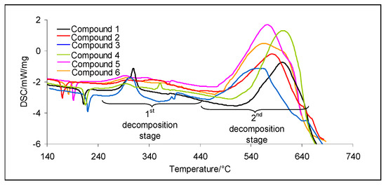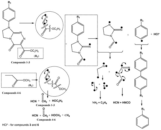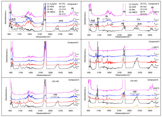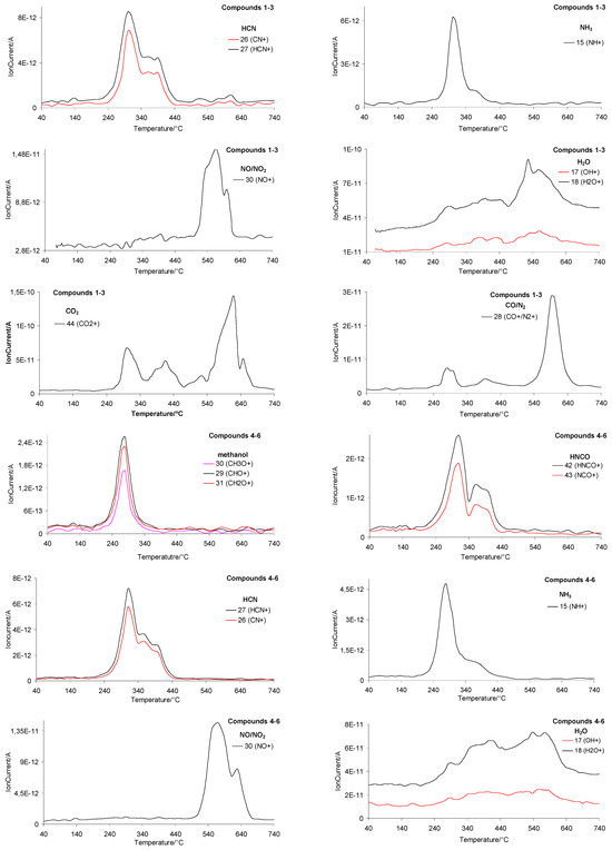 2.3. The Decomposition Course of the Tested Compounds in Inert Conditions
