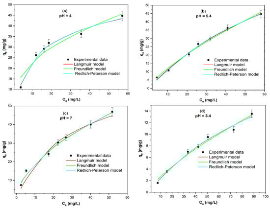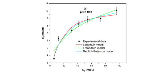 2.3. Adsorption Isotherms of CR at Different Solution pH