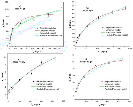 2.4. Adsorption Isotherms of CR at Different Adsorbent Dose