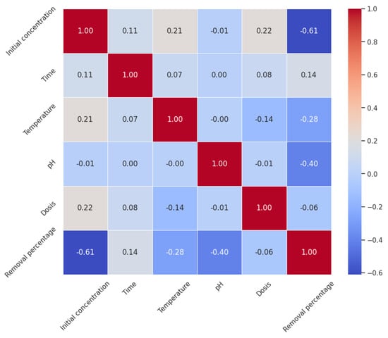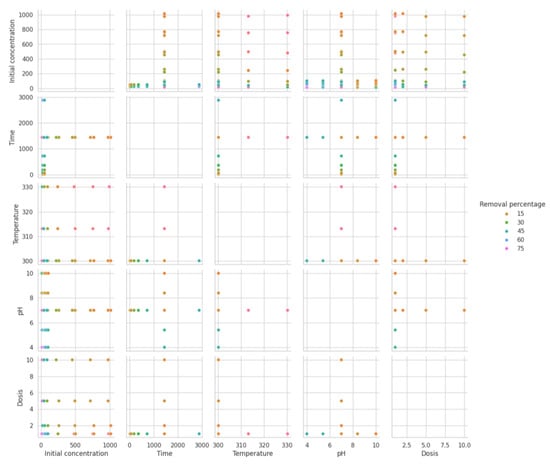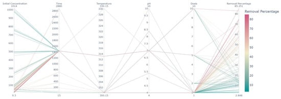 | Initial Concentration (mg/L) | Time (min) | Temperature (K) | pH | Removal Percentage |