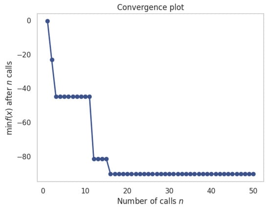 - n_calls = 50 specifies the number of evaluations of the objective function, or how many times the algorithm will try different sets of parameters.