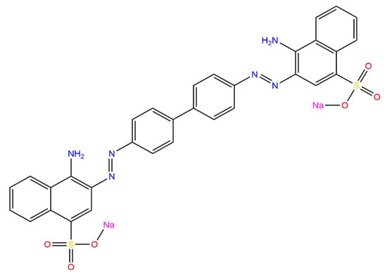 - Hernández-Zamora, M.; Martínez-Jerónimo, F. Congo Red Dye Diversely Affects Organisms of Different Trophic Levels: A Comparative Study with Microalgae, Cladocerans, and Zebrafish Embryos. Environ. Sci. Pollut. Res. 2019, 26, 11743–11755. [Google Scholar] [CrossRef]