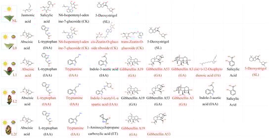 2.3. Identification of Differential Phytohormone-Related Metabolites in Pitaya following Supplemental Lighting