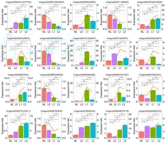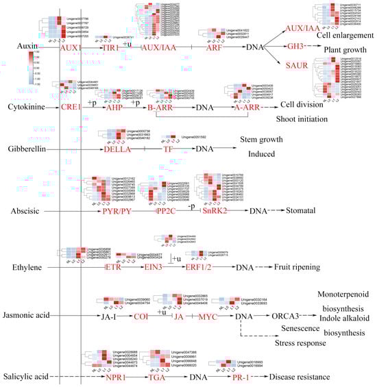 2.2. Regulation of DEGs Related to Phytohormones