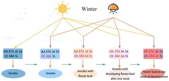 Wang M, Li J, Li T, Kang S, Jiang S, Huang J, Tang H. Light Supplementation in Pitaya Orchards Induces Pitaya Flowering in Winter by Promoting Phytohormone Biosynthesis. International Journal of Molecular Sciences. 2024; 25(9):4794. https://doi.org/10.3390/ijms25094794
