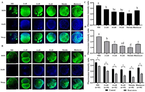 2.2.1. Effect of Heat Stress on the Expression Level of Histone H1 during Oocyte Development