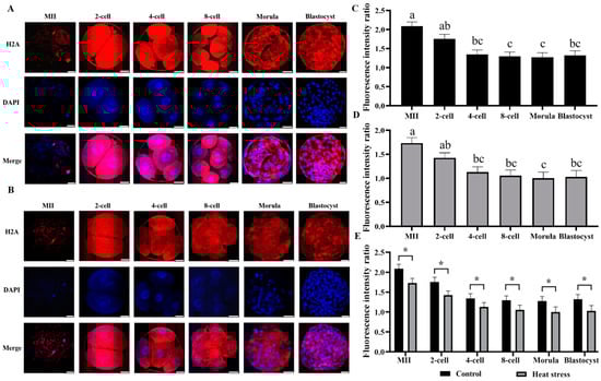 2.2.2. Effect of Heat Stress on the Expression Level of Histone H2A during Oocyte Development