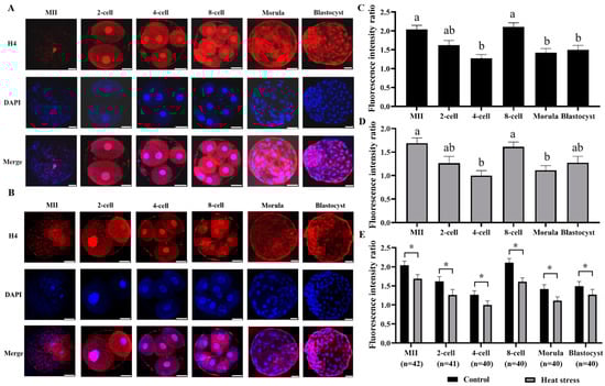 2.2.4. Effect of Heat Stress on the Expression Level of Histone H4 during Oocyte Development