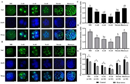 2.3.2. Effect of Heat Stress on the Expression Level of DNA Hydroxymethylation during Oocyte Development