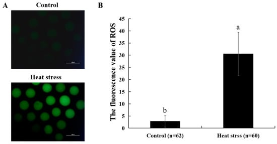 2.4. Effect of Heat-Stress Treatment on ROS Levels in Oocytes