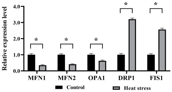 - Chen, K.L.; Wang, H.L.; Jiang, L.Z.; Qian, Y.; Yang, C.X.; Chang, W.W.; Zhong, J.F.; Xing, G.D. Heat stress induces apoptosis through disruption of dynamic mitochondrial networks in dairy cow mammary epithelial cells. Vitr. Cell. Dev. Biol. Anim. 2020, 56, 322–331. [Google Scholar] [CrossRef] [PubMed]