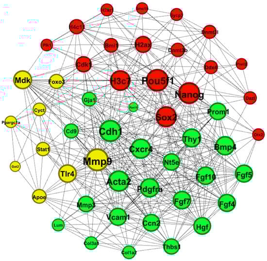 - Jeong, H.-S.; Bhin, J.; Joon Kim, H.; Hwang, D.; Ryul Lee, D.; Kim, K.-S. Transcriptional regulatory networks underlying the reprogramming of spermatogonial stem cells to multipotent stem cells. Exp. Mol. Med. 2017, 49, e315. [Google Scholar] [CrossRef][Green Version]