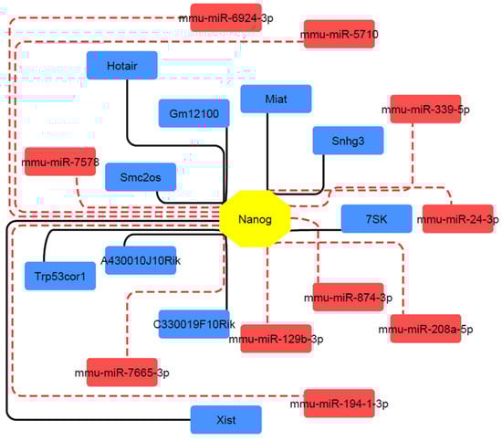 4.4. Protein–LncRNA–miRNA Regulatory Network Related to Nanog Construction