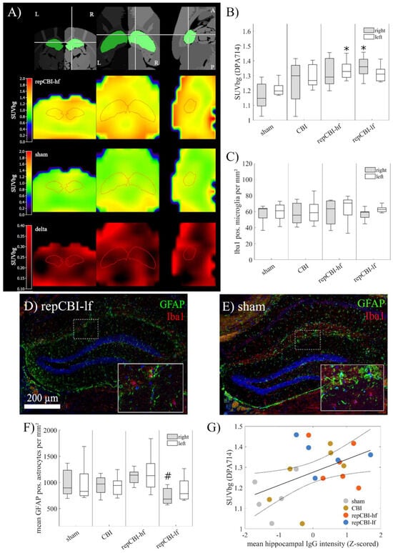 - Drieu, A.; Lanquetin, A.; Prunotto, P.; Gulhan, Z.; Pédron, S.; Vegliante, G.; Tolomeo, D.; Serrière, S.; Vercouillie, J.; Galineau, L.; et al. Persistent neuroinflammation and behavioural deficits after single mild traumatic brain injury. J. Cereb. Blood Flow Metab. 2022, 42, 2216–2229. [Google Scholar] [CrossRef]