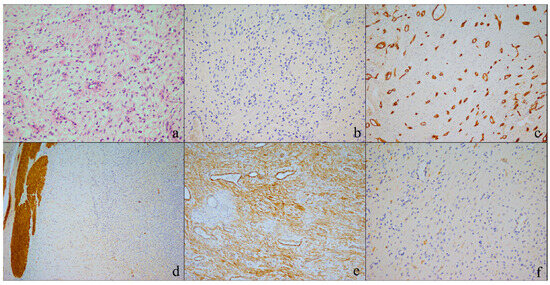 - Li, P.; Yang, S.; Wang, C.; Li, Y.; Geng, M. Presence of smooth muscle cell differentiation in plexiform angiomyxoid myofibroblastic tumor of the stomach: A case report. Int. J. Clin. Exp. Pathol. 2014, 7, 823–827. [Google Scholar]