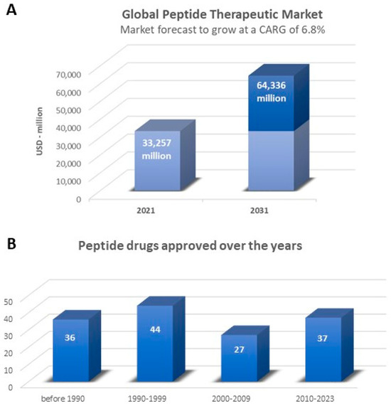 - Anand, U.; Bandyopadhyay, A.; Jha, N.K.; Pérez de la Lastra, J.M.; Dey, A. Translational aspect in peptide drug discovery and development: An emerging therapeutic candidate. Biofactors 2023, 49, 251–269. [Google Scholar] [CrossRef] [PubMed]
