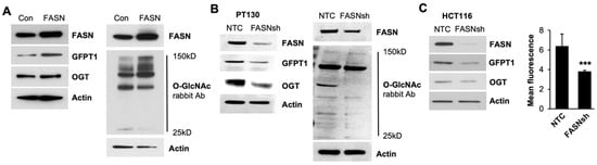 2.3. FASN Regulates GFPT1 and OGT Enzymes and O-GlcNac Level in CRC Cells
