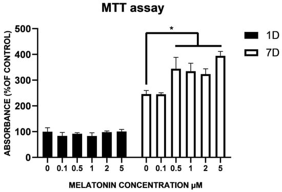 - Cil, N.; Yaka, M.; Neset, N.G.; Secme, M.; Mete, G.A. Effects of different doses of melatonin on rat adipose derived mesenchymal stem cells. Horm. Mol. Biol. Clin. Investig. 2021, 42, 395–401. [Google Scholar] [CrossRef]