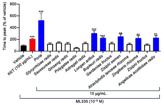 2.3. Specific Compounds Contained in Six of the Fourteen Herbal Components of KKT Were Involved in TREK-1 Inhibition