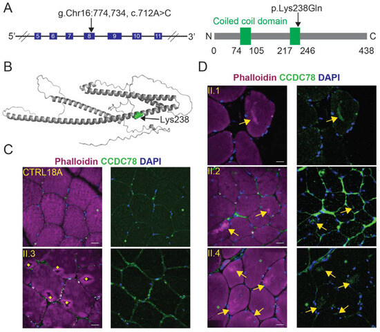 2.6. Individuals with the CCDC78 Variant Show Mislocalization of CCDC78