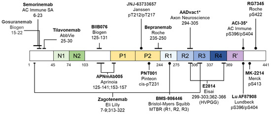 241. Ji, C.; Sigurdsson, E.M. Current Status of Clinical Trials on Tau Immunotherapies. Drugs 2021, 81, 1135–1152. [Google Scholar] [CrossRef] [PubMed]
