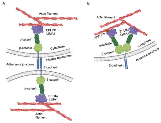 - Abe, K.; Takeichi, M. EPLIN mediates linkage of the cadherin catenin complex to F-actin and stabilizes the circumferential actin belt. Proc. Natl. Acad. Sci. USA 2008, 105, 13–19. [Google Scholar] [CrossRef] [PubMed]