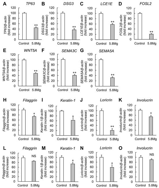 2.1. Effect of Mg2+ on the Expression Levels of Epidermal Differentiation-Promoting Factors