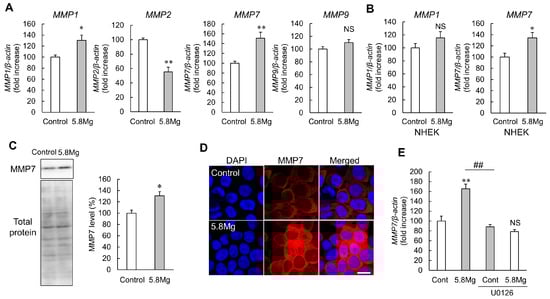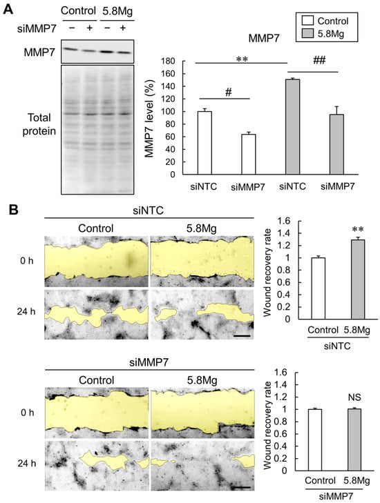 2.5. Effect of MMP7 Knockdown on Mg2+-Induced Cell Migration Promotion