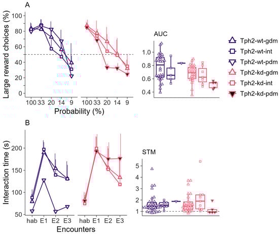 p-value < 1.103). Behavioral flexibility was similarly expressed in Tph2-wt and Tph2-kd animals (