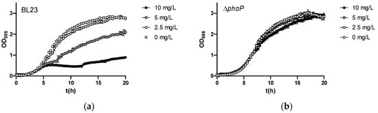 - Gardner, S.G.; McCleary, W.R. Control of the phoBR regulon in Escherichia coli. EcoSal Plus 2019, 8, 10–1128. [Google Scholar] [CrossRef] [PubMed]