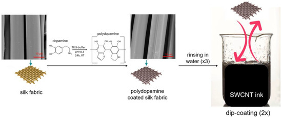 Polydopamine/SWCNT Ink Functionalization of Silk Fabric to Obtain Electroconductivity at a Low Percolation Threshold