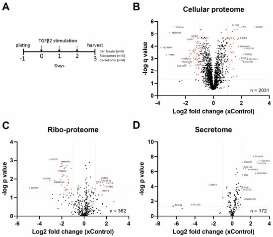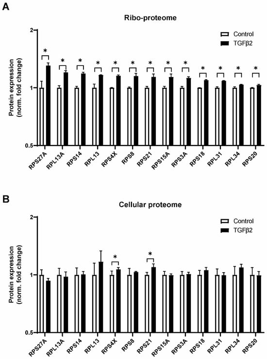 2.4. TGF-β2 Alters Ribosome Protein Composition, Cellular Proteome and Secretome